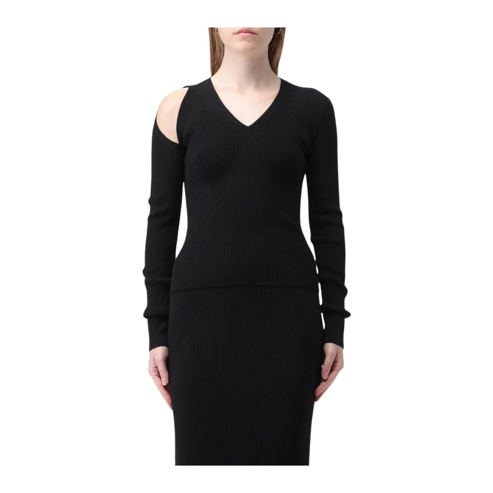 Alexander McQueen, Stickade Tröjor , Dam, S, Räfflad Stickad Cutout Tröja Klänning
