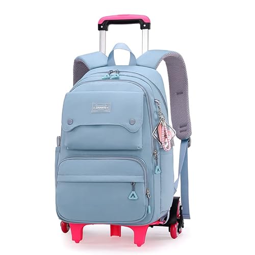 Tanou Trolley ryggsäck med 6 hjul, 40 cm lätt skolväska med hjul för flickor i grundskolan, avtagbar skolryggsäck, vagn för skolresor, 8–14 år, blå, Großes Kinder, Ryggsäck