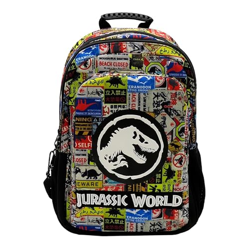 Jurassic World ryggsäck, 43 cm, anpassningsbar till Trolley, skolmaterial, skolväska, ryggsäck, ryggsäck, flerfärgad, unisex, Jurassic Park, Officiell produkt (CyP Brands), svart, Estandar, Avslappnad