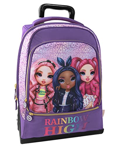 RAINBOW HIGH - Justerbar Trolley Ryggsäck med försvinnande handtag och axelremmar, dragkedja och framficka Zip - Liten ryggsäck - Skolryggsäck cm 36x23X47H, Purple, Taglia unica, Avslappnad
