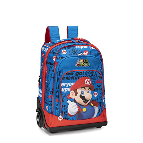 MARIOKART - Justerbar Trolley Ryggsäck med försvinnande handtag och axelremmar, dragkedja och framficka Zip - Liten ryggsäck - Skolryggsäck cm 36x23X47H, Röd, Taglia unica, Avslappnad