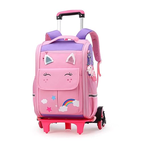 Tanou Trolley ryggsäck med 6 hjul, 40 cm lätt skolväska med hjul för flickor i grundskolan, avtagbar skolryggsäck vagn för skolresor, 1–3 klass, Rosa lila, Rolling Backpack, Ryggsäck