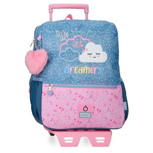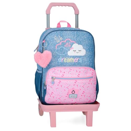 Enso Dreamer Barnryggsäck, skolryggsäck, tillverkad av polyester, dubbel, multiriktad svänghjul, mångsidig., blå, Rucksack 32 + Trolley, Ryggsäck 32 + vagn
