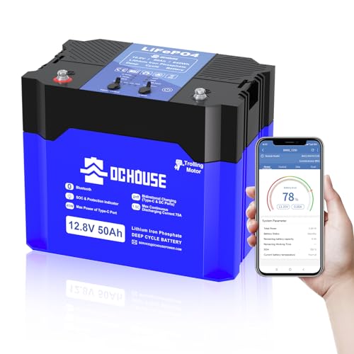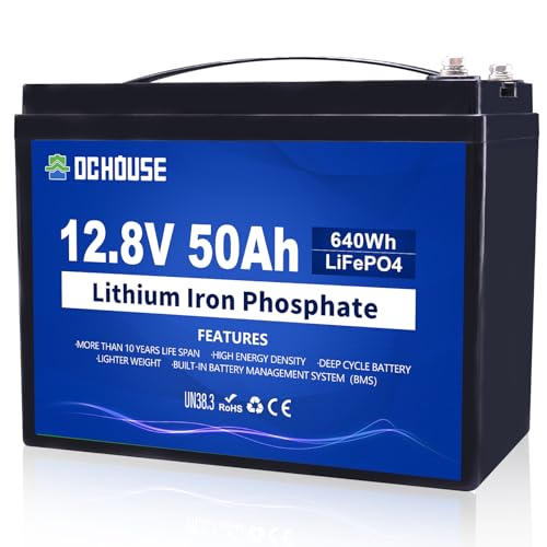 DCHOUSE 12V 50Ah LiFePO4-batteri, integrerad BMS, 10 års livslängd, mer än 4000 cykler, perfekt för båt, marin, trolling-motor, camping, sol-/vindkraft, husbil, fisksökare