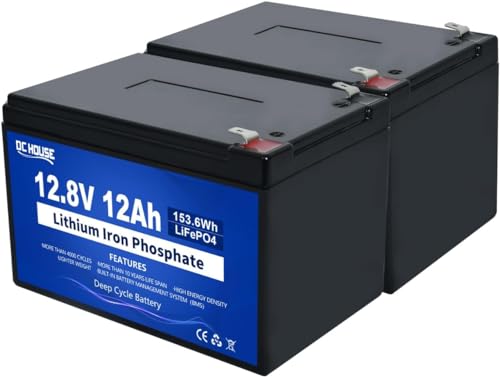 DCHOUSE 12 V 24 Ah (2-pack 12 AH) LifePo4 batteri djupa cykler med 15 A BMS, 10 års livslängd, för trolling motor sol RV hushållsapparater marin golfvagn energireserv strömförsörjning nödbelysning