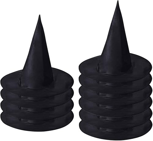 Yukiyi 9 st halloween häxhattar för kvinnor svarta häxor hatt hängande halloween dekorationer svart spetsig trollkarl hattar cosplay festhatt kostym tillbehör för barn vuxna flytande häxor hattar