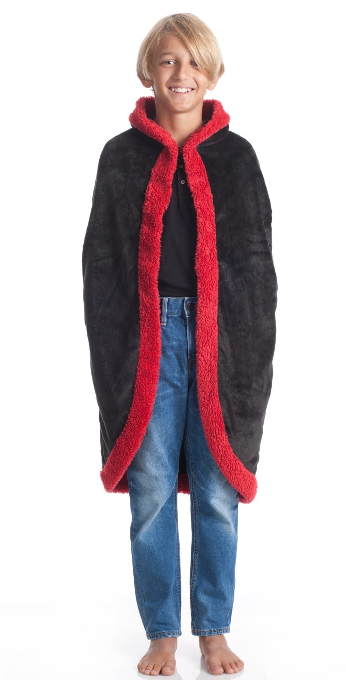 Proumhang Svart Huva Cape Lång Vampyr Liemannen Trollkarl Mantel för Barn Halloween Karneval Jul Kostym