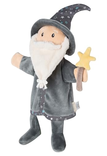 Sterntaler handdocka trollkarl gjord av mjuk fleece, barn- och babyleksaker, huvudvadderad med polyestervadd, med trollstav, 36 × 27 × 7 cm – mörkgrå