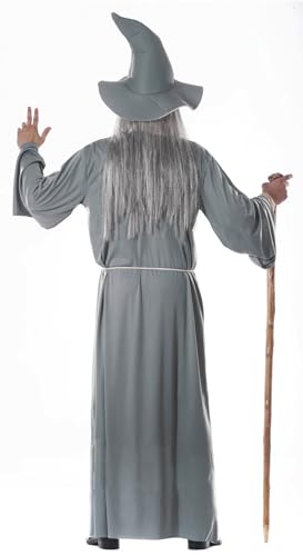 FIESTAS GUIRCA Stor trollkarldräkt för män - inkluderar trollkarlshatt, grå tunika och bälte - Halloween-kostymer för män, vuxen storlek XL