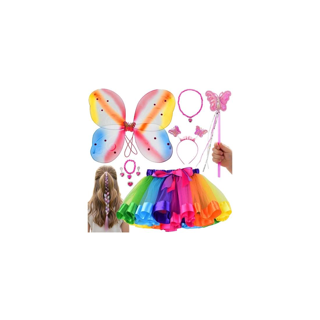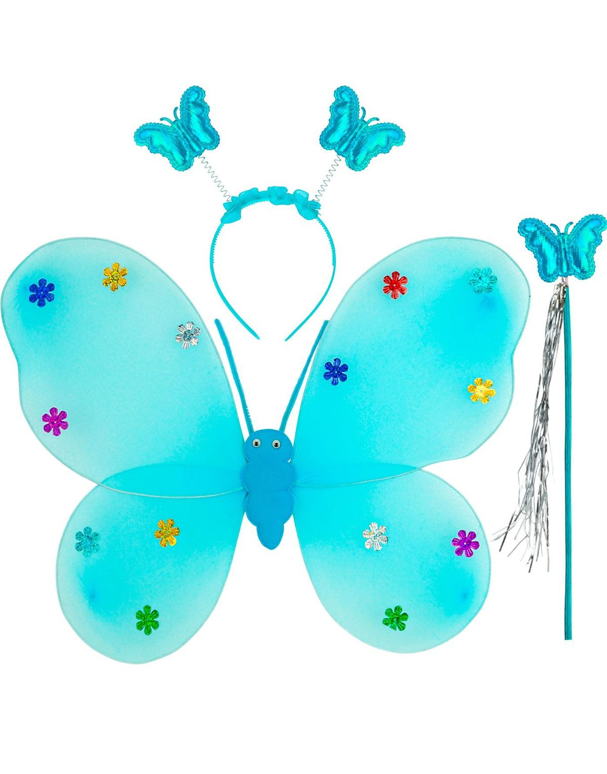 Fjärilsdräkt för barn, 6-delat set med vingar och trollstav