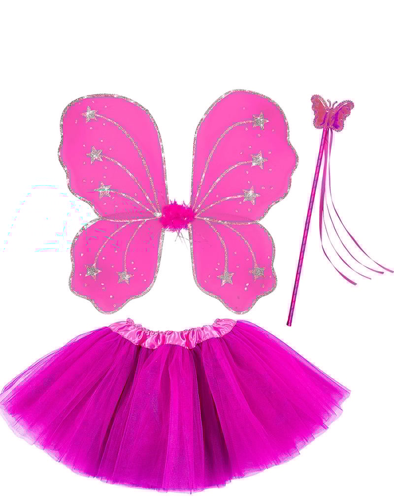Rosa Kostymset till Barn med Vingar, Tutu och Trollstav