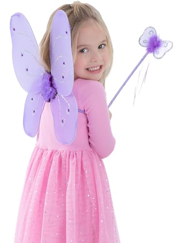 Miss-shop barnvingar, fjäril flicka vingar set 2 stycken trollstav och älvvingar för barn flickor halloween kostym tillbehör cosplay