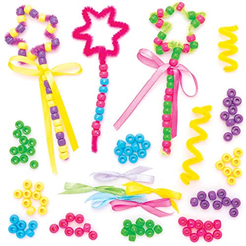 Baker Ross Pärlor, trollstav, pysselset (5 stycken) – påskbastelidé för barn för att dekorera och leka, blå, gul, grön