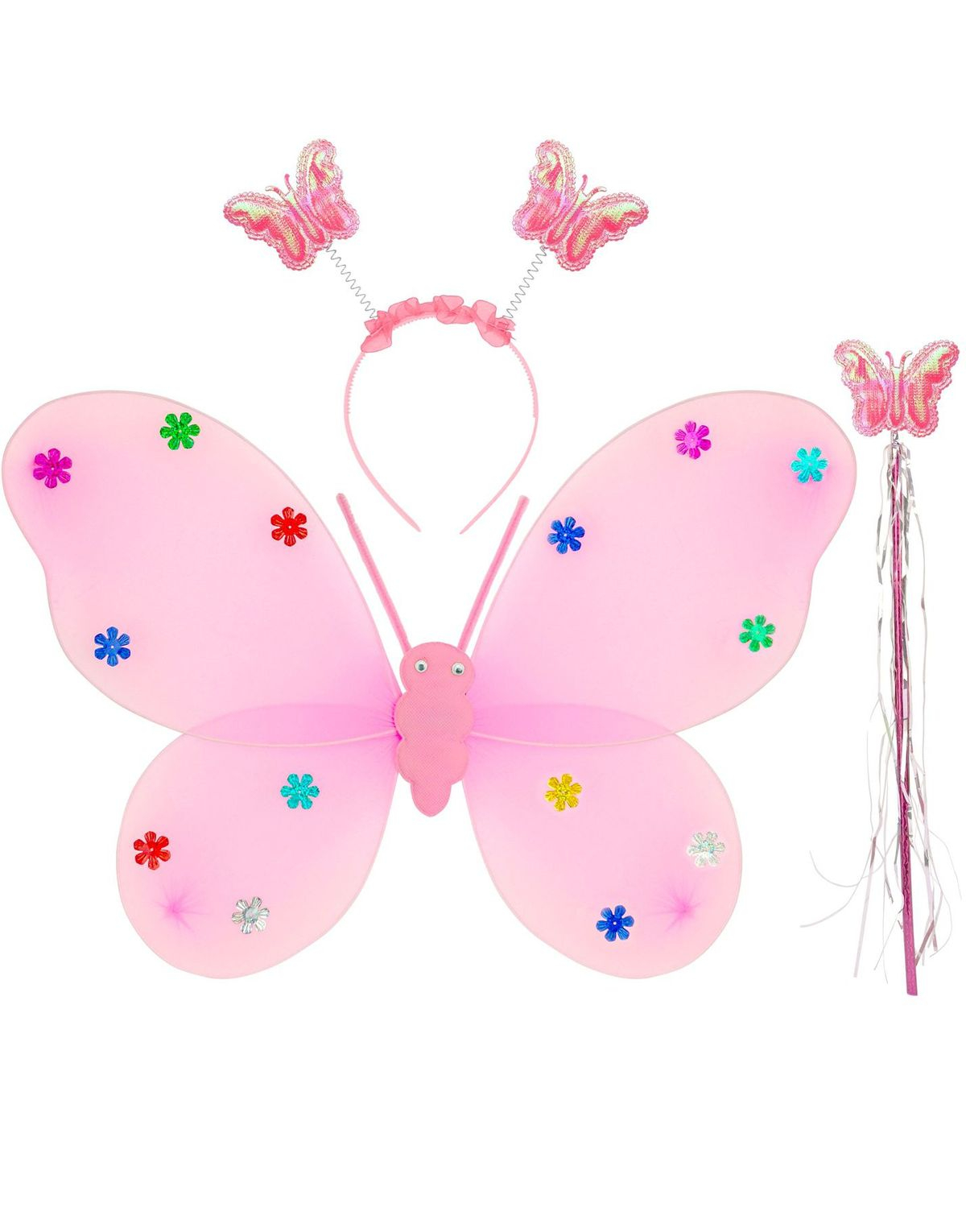 Rosa Fjärilsvingar, Hårband och Trollstav till Barn