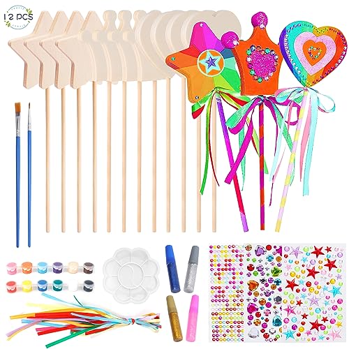 Towviy Magisk stjärnstav, kreativ fritid flickor 6 år gammal trollstav prinsessa älvstav tillbehör flicka födelsedagspresent flicka gör-det-själv-kit barn 5 6 7 8 9 10 år gammal