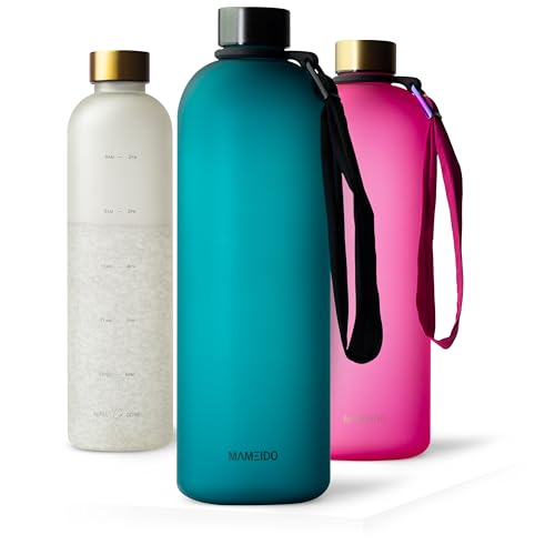 MAMEIDO dricksflaska 1 l, kolsyra lämplig, läckagesäker dricksflaska med tidsmarkör som drickspåminnelse, vattenflaska BPA-fri för sport (Tropical Breeze)