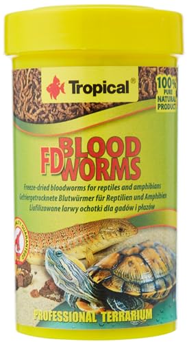 Tropical Blood Worms Freeze-Dried Food for Aquatic and Land Turtles, reptiler och amfibians, 1-pack (1 x 100 ml)