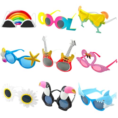 Festglasögon roliga, 9 stycken maskeraddräkter roliga, Hawaiianska tropikerna partyglasögon, roliga glasögon, festglasögon, fest glasögon för strand bröllop maskerad karneval examen fotorekvisita