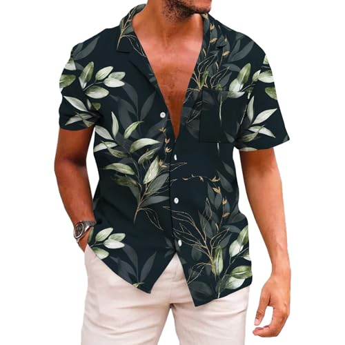 KYKU Funkig hawaiiskjorta för män, palm, strand, skjortor, kläder för semester i tropikerna, Svart blad, S