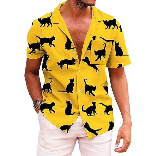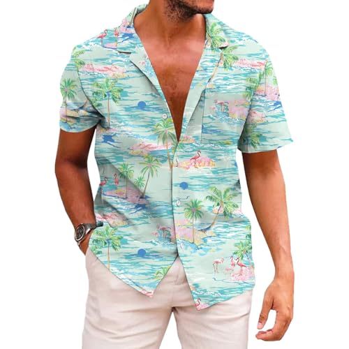 KYKU Funkig hawaiiskjorta för män, palm, strand, skjortor, kläder för semester i tropikerna, Färgglatt, XXL