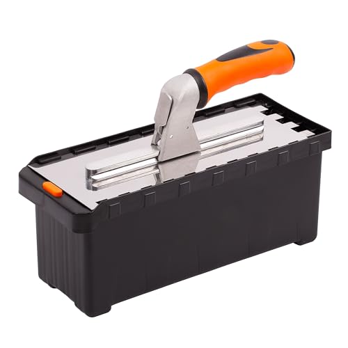 MIVOS Murslevar med avtagbart handtag och transportlåda – 6, 8, 10, 12 mm, U-typ, tiger-typ – 6 tandade murslevar – rostfritt stål trowel med mjukt grepp – murslev