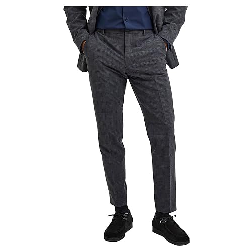 SELECTED HOMME Herr slhslim-timelogan grå mulchk TRS B Noos Tuxedo-byxor, grå/kontroll: multi, 42 SE