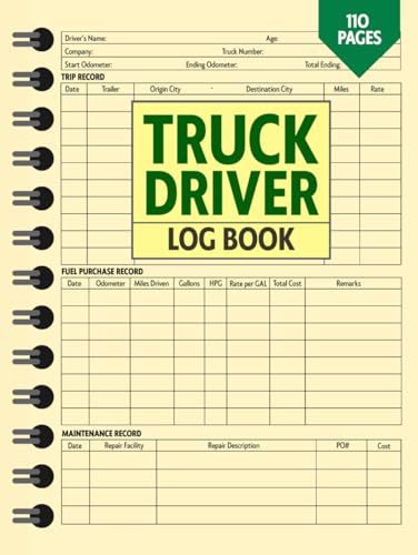 Truck Driver Log Book: Track your mileage, fuel, maintenance, and revenue with this comprehensive truck driver logbook – the perfect tool for drivers and owner-operators.