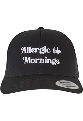 Mister Tee herr mössa allergic to Mornings retro trucker, baseballkeps med främre stick, truckerkeps för män, svart, En Storlek