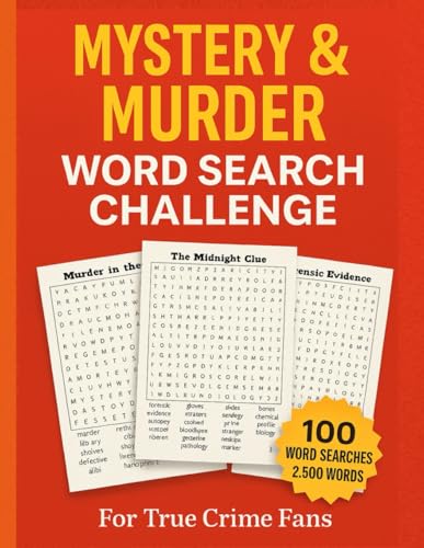 Mystery & Murder Word Search Challenge: 100 Puzzles for True Crime and Detective Fans: Uncover 2,600 Hidden Words Across 100 Themed Grids Packed with Suspense, Clues, and Criminal Intrigue