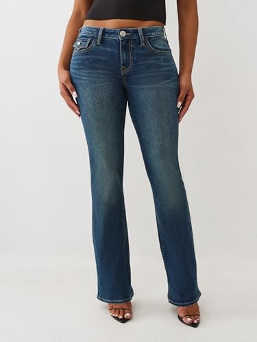True Religion dam Becca Mid Rise Bootcut kristall klaff – enkel nål söm topp spot jeans byxa, Indigo uppgradering, 32