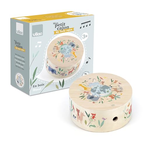 VILAC - Cajón trumma världens djur - Sarah Betz - musikalisk leksak - 1 Cajón trumma i trä - uppvaknande spel för barn i trä - leksak för barn från 3 år - 7113