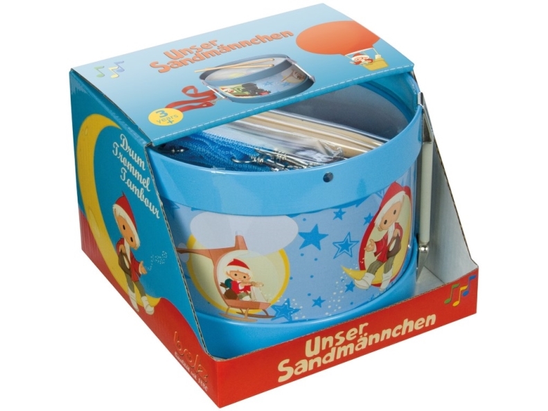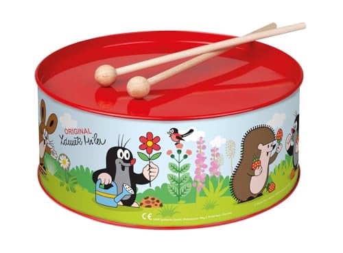Lena 52606 Den lilla munkaveln plåttrumma Ø 20 cm, barntrumma av plåt med 2 klubbor, slaginstrument för musik, musikinstrument för barn från 3 år, trumma med motiv, flerfärgad