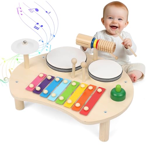 Apritsce 8-i-1 baby-instrumentset, musikinstrument med xylofoner, cymbals, trumma för barn, 3-4 5 år pojke flicka Montessori leksak