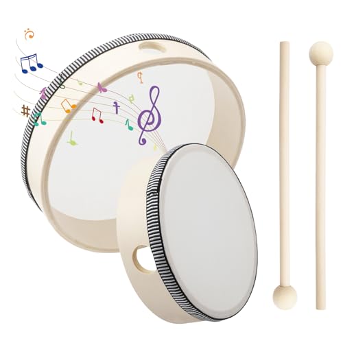 2 stycken trumma barn (15 cm & 20 cm), barntrumma, tamburin barntrumma, trumma för barn, tambourin, handtrumma för vuxna, trummor Ta med två trumpinnar