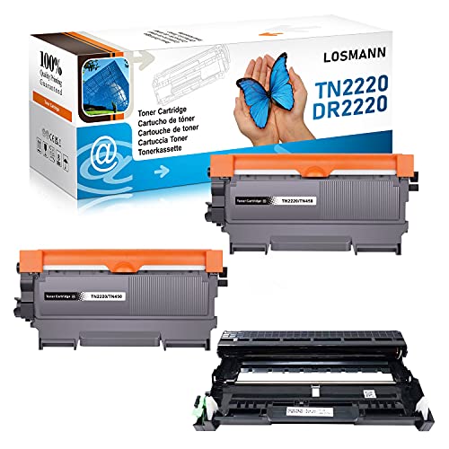 LOSMANN 2X tonerkassett och 1 x trumma kompatibel med Brother TN2220 TN2010 DR2200 för Brother HL-2215 HL-2240 HL-2240D HL-2240L HL-2250DN HL-2270DW MFC-7360N MFC-7460DN MFC-7860DW DCP-7055 DCP-7055W
