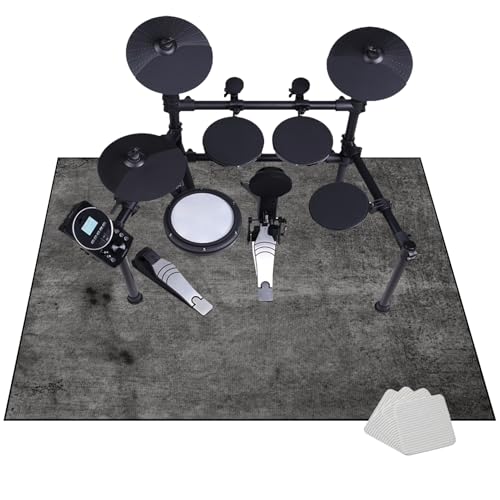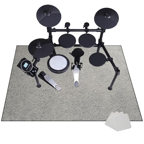 JaevKwzy Professionell trummatta – ljudisolerad matta trumma matta-kit matta 140 x 120 cm – halkfri bas trumma golvmatta – musikinstrument trummatta – ljudabsorberande matta för elektronisk trumma
