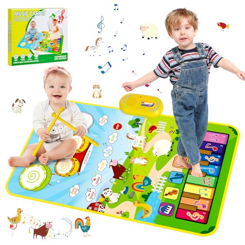 Docam Babyleksak för 1 år gamla pojkar, 3-i-1 småbarn musikaliskt piano och trummatta med djurljud, musiklekmatta, födelsedagspresenter, leksaker för 1 2 3 år gamla flickor