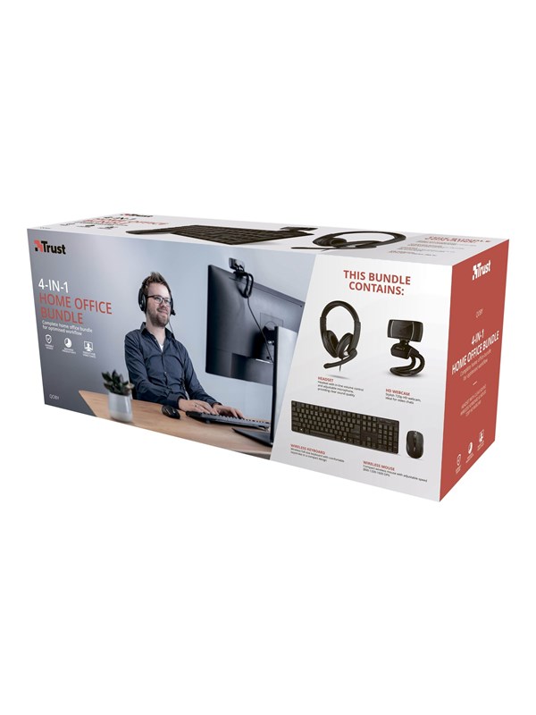 Trust Qoby 4-in-1 Home Office Set - Keyboard, mouse, headset and web camera set - Nordisk - Svart