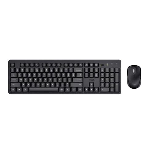 Trust Ody II trådlöst AZERTY belgiskt tangentbord och muspaket tyst, stänkbeständig, flytande platta knappar, unik USB-mottagare, set för Windows Mac bärbar dator, svart