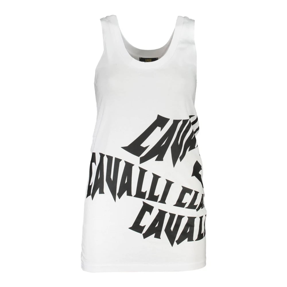 Cavalli Class, Toppar , Dam, XS, Bomull, Vit Bomull Tank Top med Tryck