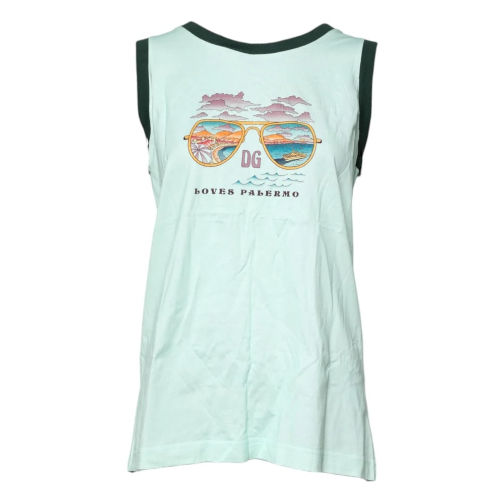 Dolce & Gabbana, Toppar , Dam, L, Bomull, Ljusgrön Tank Top med Grafiskt Tryck