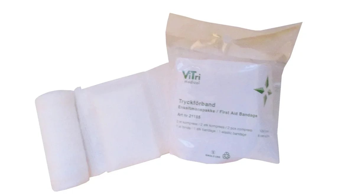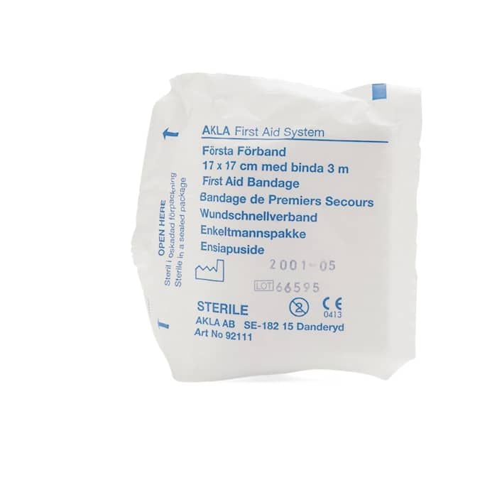 Kombi / Tryckförband 20x20cm "Försvarets modell i tålig förpackning m rivtråd"