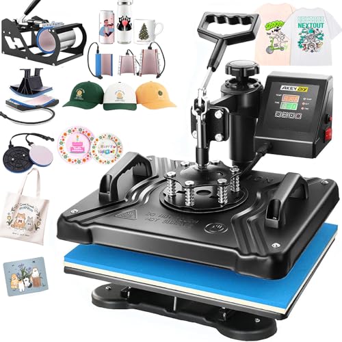 Överföringspress 8-i-1 varmpressmaskin, 38 x 30 cm mångsidig värmepress med 360° vridbar, värmepress, kopppress runt koppar, hatt, mössor och t-shirt-tryckmaskin (8-i-1 svart)