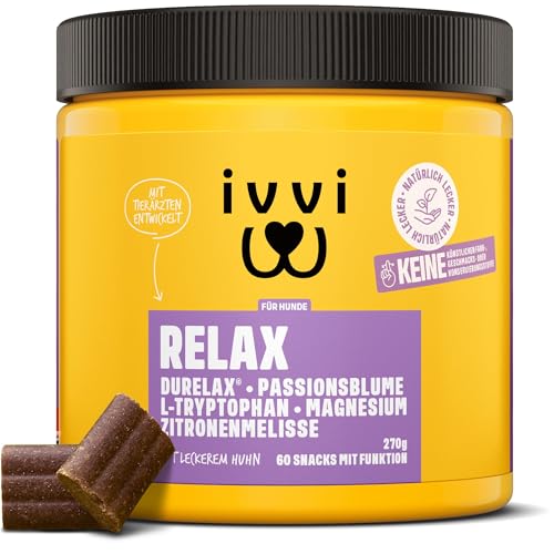 ivvi | Relax - lugnande medel för hundar med L-tryptofan för ångest, stress och lugnande - 60 läckra mellanmål med kyckling