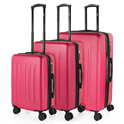 SKPAT - Resväska Set 4 Hjul ABS - Resväska Set 3 ST - Stor resväska, medium resväska och resväska Kabin - Set resistenta och lätta resväskor med TSA hänglås, Fuchsia