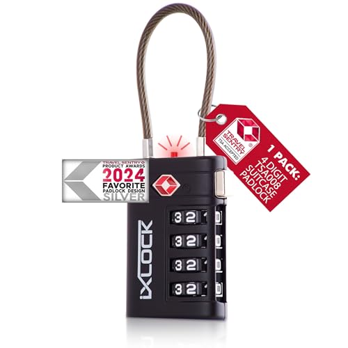 iXLOCK TSA-godkänd Kabellås (Svart 1-pack) 4-siffrig kod TSA Lås Godkänd Säkerhet Ryggsäck Hänglås Resväska, Lås, Kombinationslås med Kabel resväska lås, Gymskåp, Hänglås