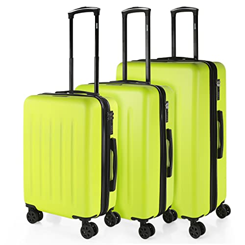 JASLEN - Resor Resväskor Styv och utbyggbar 4 dubbla Hjul. ABS. TSA hänglås. Motståndskraftig och Lätt Bagage. Medelstor., Iriserande senap