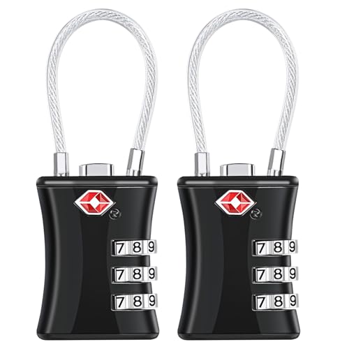 OW-Travel TSA-godkänd Kabellås (Svart 2-pack) 3-siffrig kod TSA Lås Godkänd Säkerhet Ryggsäck Hänglås Resväska, Lås, Kombinationslås med Kabel resväska lås, Gymskåp, Hänglås