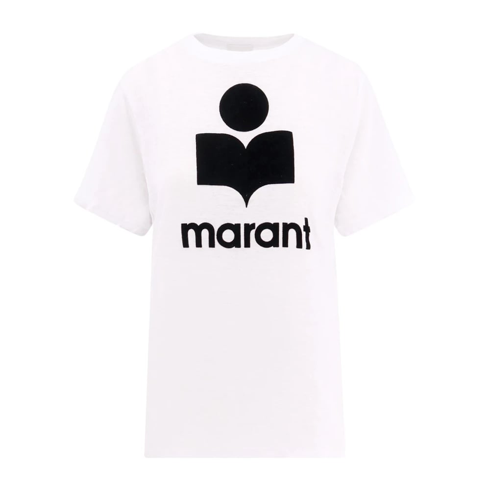 Marant étoile, Toppar , Dam, M, Linne, Vit Linne T-shirt med Sammet Logo