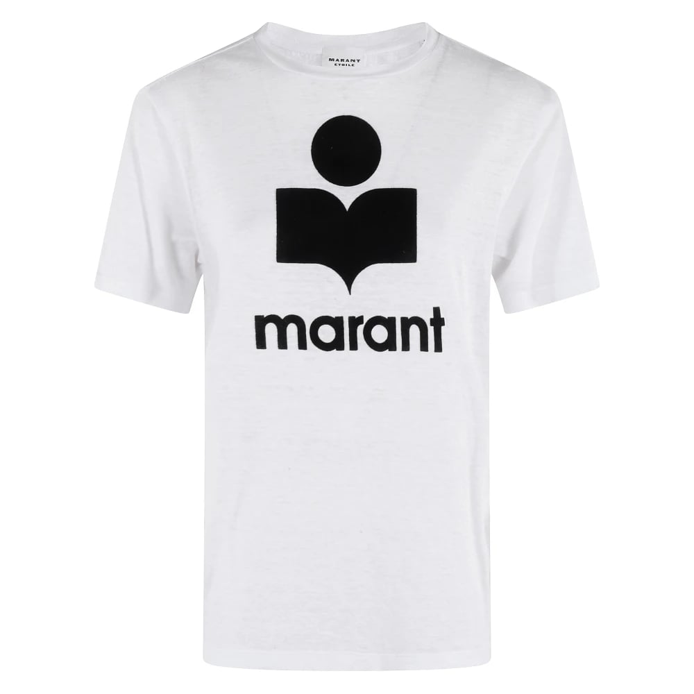 Marant étoile, Toppar , Dam, S, Linne, Linne T-shirt med Flockad Logotyp
